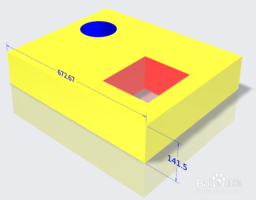 - 本例我们就在默认的Front注释平面来标注尺寸,鼠标左键选择一个边,马上就会显示边长尺寸,鼠标移动光标到准备放置尺寸的位置,单击鼠标中键确认放置尺寸。
