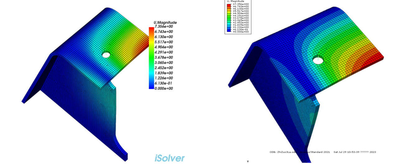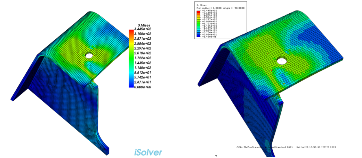 工况2 isolver(左)和Abaqus(右)Mises应力云图