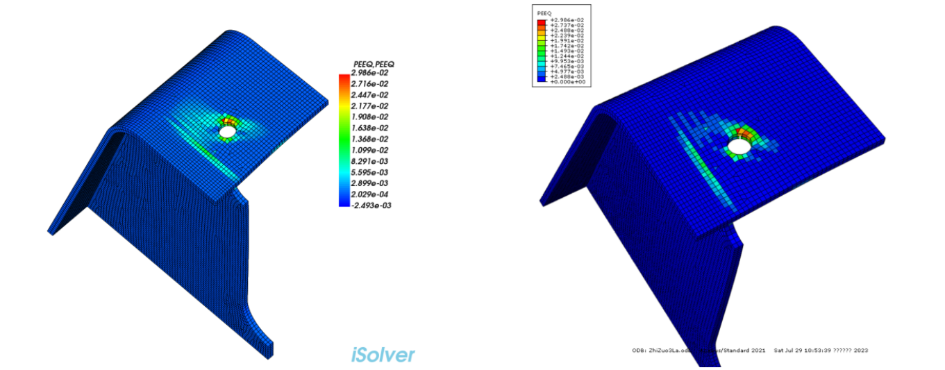 工况2 isolver(左)和Abaqus(右)等效塑性应变