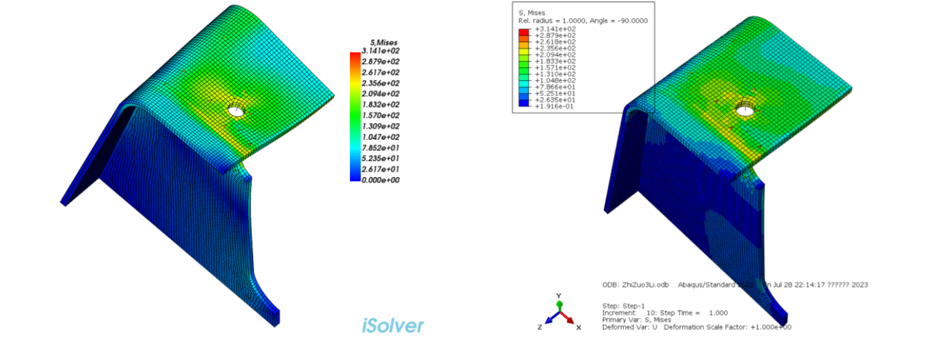 工况1下isolver与Abaqus的Mises应力云图如下所示: