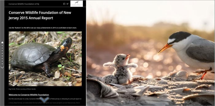 来自新泽西州保护野生动物基金会使用Story Map Journal模板制作的年度报告。