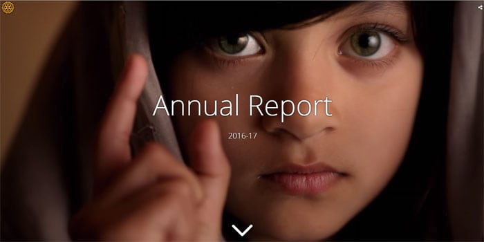 年度 报告 用于全面总结前一年的业务或组织活动,其内容可以涵盖各种各样的活动,可以通过多种不同的媒介配合地图予以增强表达效果。下面这个例子是扶轮国际(Rotary International )使用全Story Map Cascade模板来概述他们组织过去一年中的的主要活动和里程碑事件。