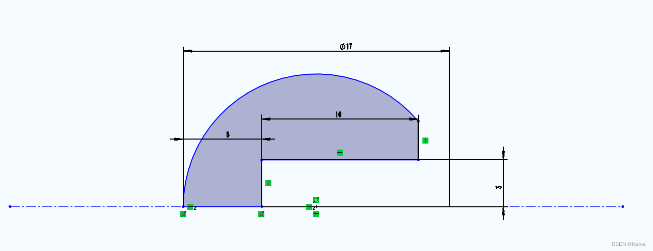 首先绘制球头的外形轮廓草图,然后旋转成球头主体轮廓。