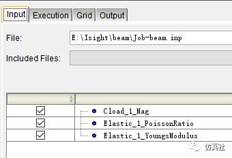 Abaqus模块:导入悬臂梁Job-beam.inp和Job-beam.odb文件,选择实验设计参数。