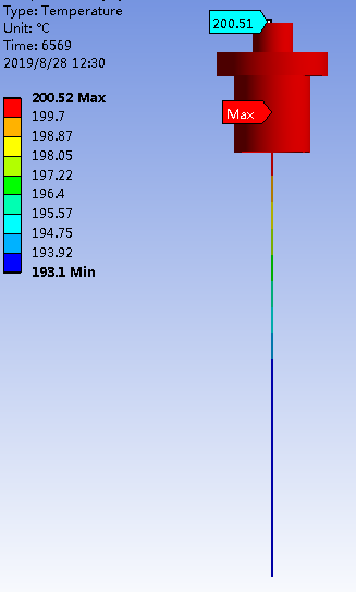 断电 169 S,即 6569 S时,控制极上最高温度降为 194.28℃,最低温度 194.23℃,如图 18。