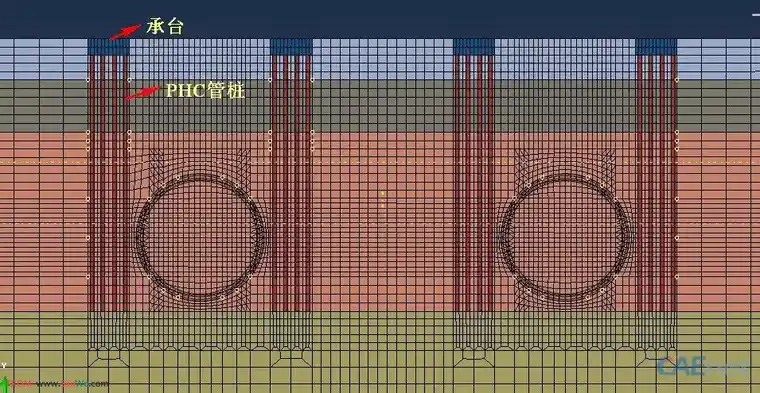 不考虑地下水渗流和固结。其它都设为线弹性。下面是网格示意图。