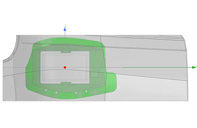 用于仿真的保险杠格栅的CAD文件截断截面,标明了雷达传感器位置