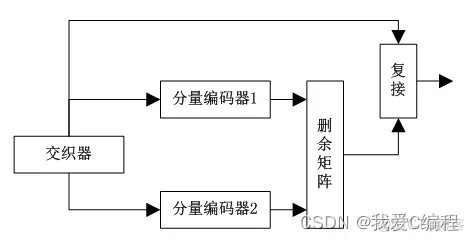 删余矩阵是通过删除冗余的校验位来调节码率,Turbo码采用两个成员编器。