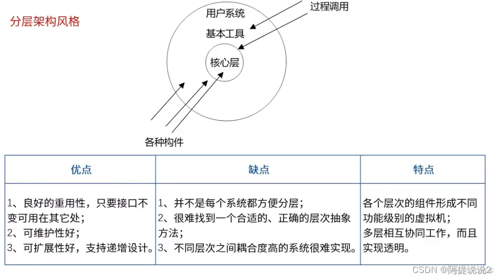 | 调用/返回风格 | 主程序/子程序、面向对象、层次结构 |