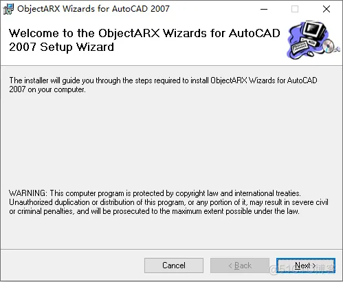 首先自己去网上搜索下载AutoCAD2007的ARX开发包。