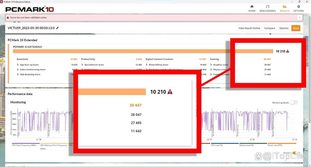 在考验CPU多线程长时间测试的CINEBENCH R23中,能够看到光影精灵9的散热表现足以支撑酷睿i7-13700HX长时间高负荷运行表现。