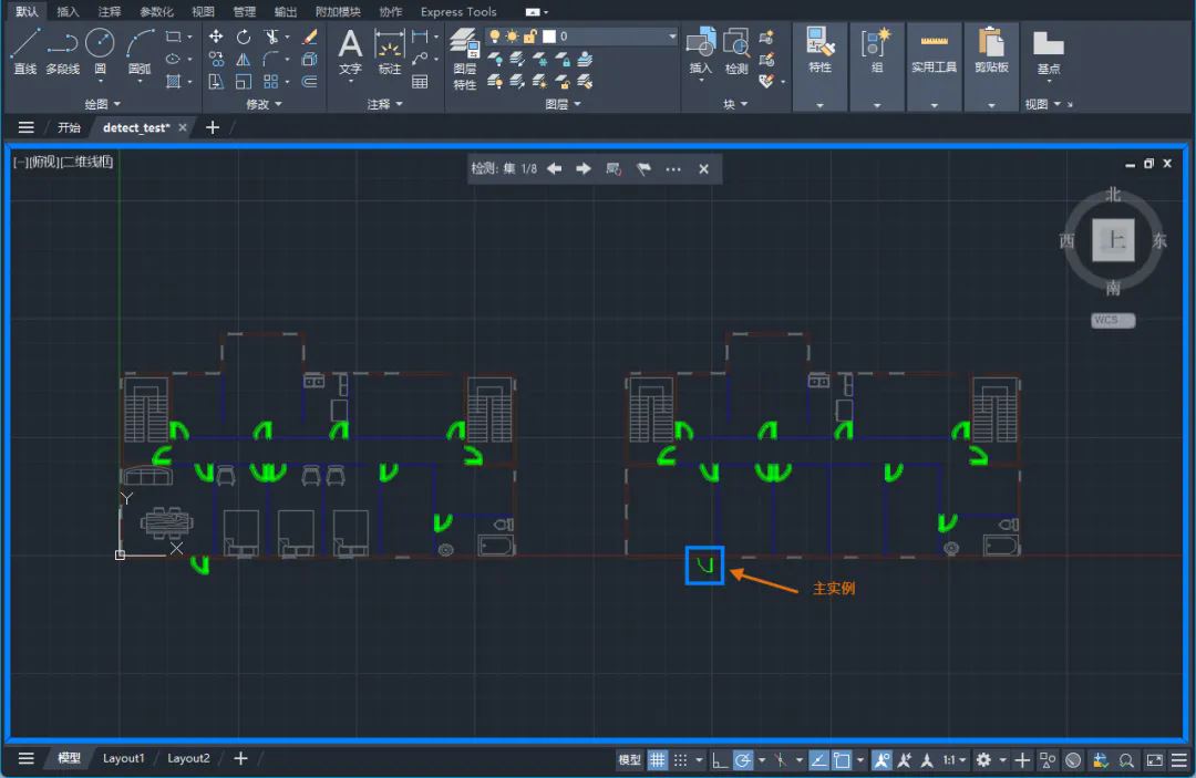 在每个集内,主实例(以蓝色边框标出)将在转换为新块时用作块定义。或者,如果选择转换为现有块,则主实例将用于定义插入比例和旋转。