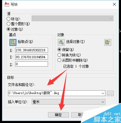 设置好文件名和路径,点击确认,完成外部块的创建。