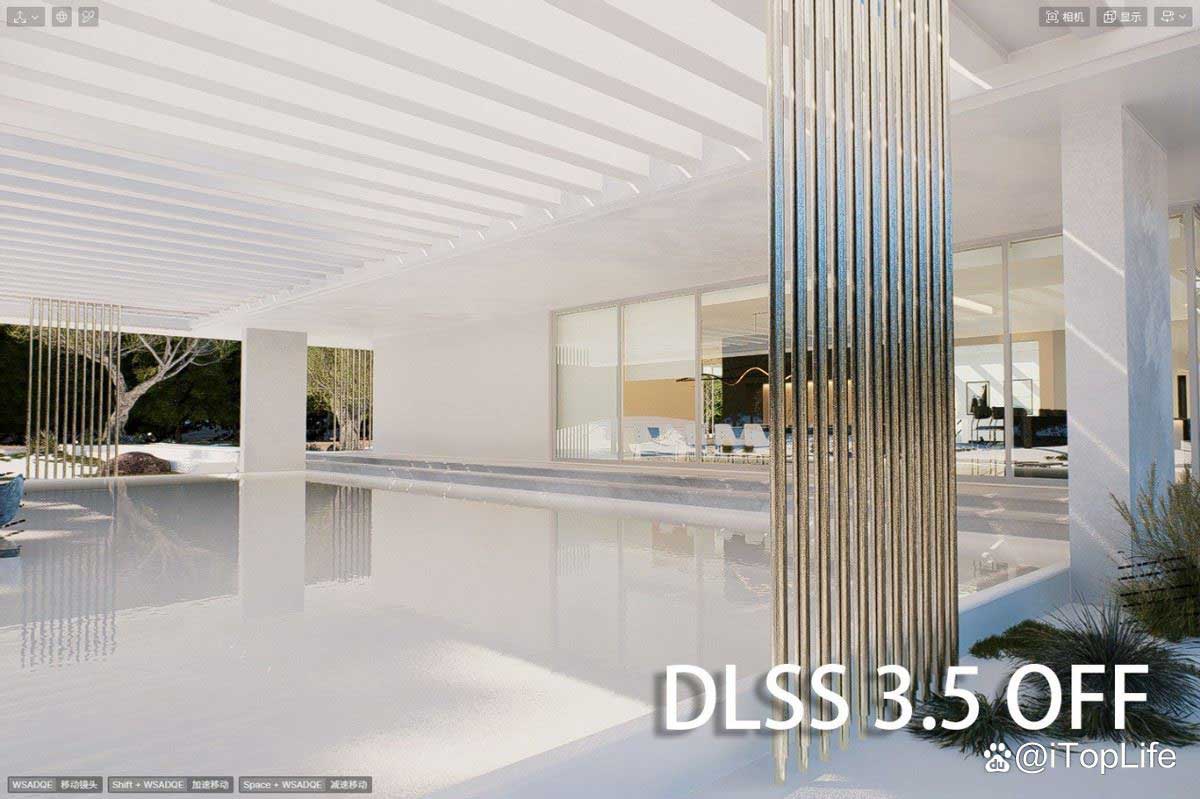 值得注意,在D5渲染器中,DLSS 3.5使用了比DLSS 3多5倍的数据训练,因此也可以更好的识别光线追踪效果,在时间、空间数据中做出更合理的判断,从而实现高效率的扩展。