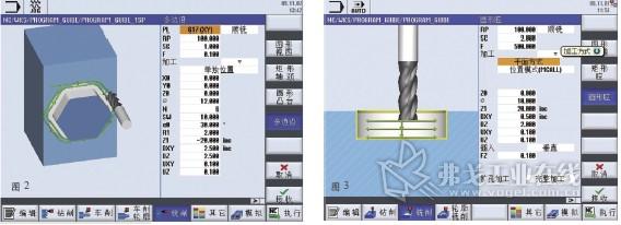 (1)操作智能化。采用图形化用户界面,操作按键采用形象化的图符来代表按钮的功能,如图2 所示。它具有“动画支持”功能,可精确地显示刀具运动,直观显示型腔的螺旋铣削,以及深孔钻削时的排屑和断屑机理等动态过程。