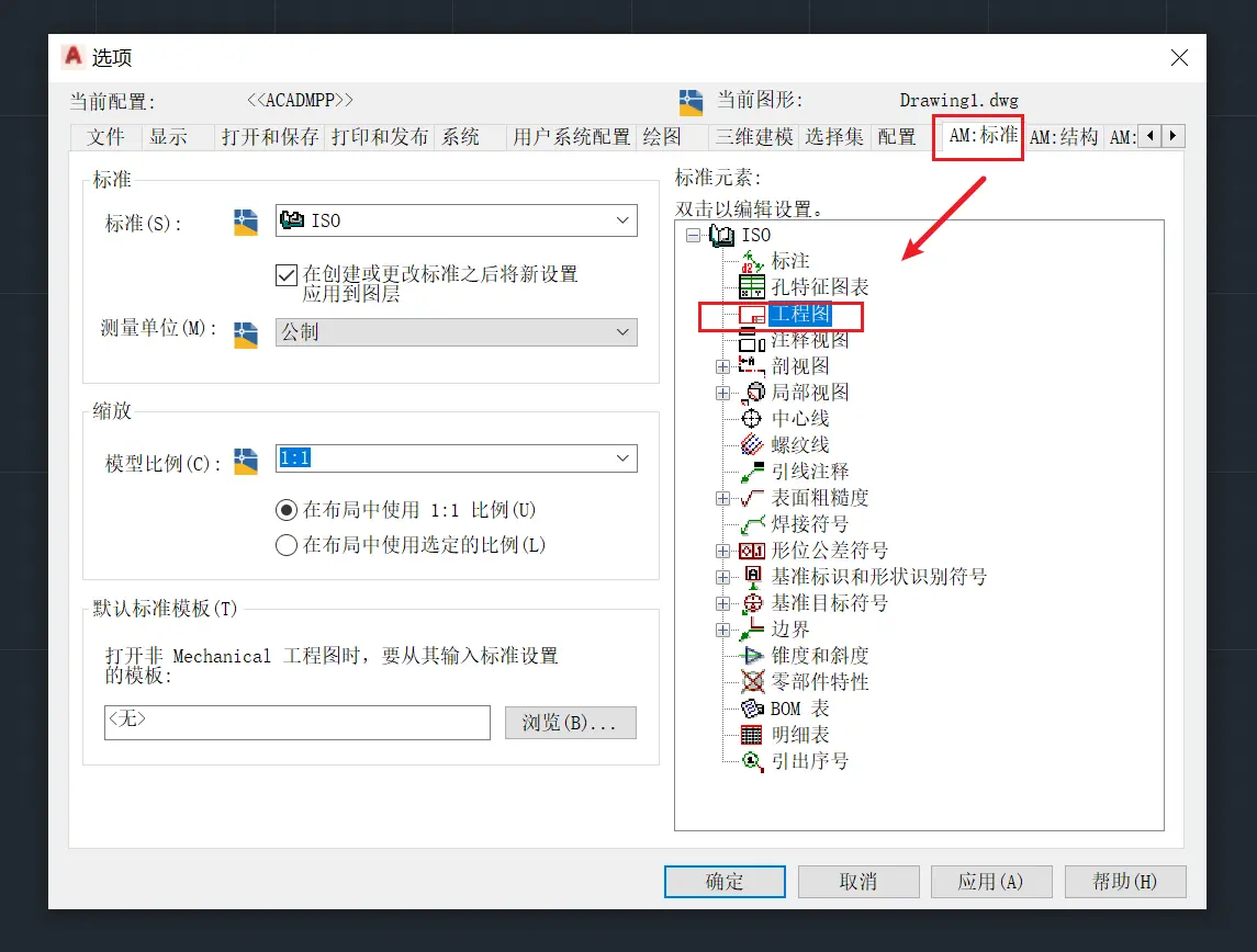 将工程图设置中模板改成修改后的;