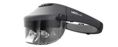 将自由曲面棱镜用于头盔显示器(OST-HMD),棱镜采用三个自由曲面表面,适合近场光学观察,具有大视场角、低F数、重量轻以及无干扰波形的优点。北京理工大学采用楔形断面自由曲面棱镜粘合一个自由曲面透镜的方式,可使光学系统的总尺寸小于25mm,重量小于8g,视场角53.5°,F数1.875,出瞳直径为8mm。下图所示为北京耐德佳显示技术有限公司推出的基于自由曲面棱镜的可量产的增强现实头戴显示产品NED+X2。