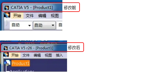 ApplicationFrame.Title="CATIA V5 r26" 将双引号的内容改成想显示的内容即可,就会变成图1所示