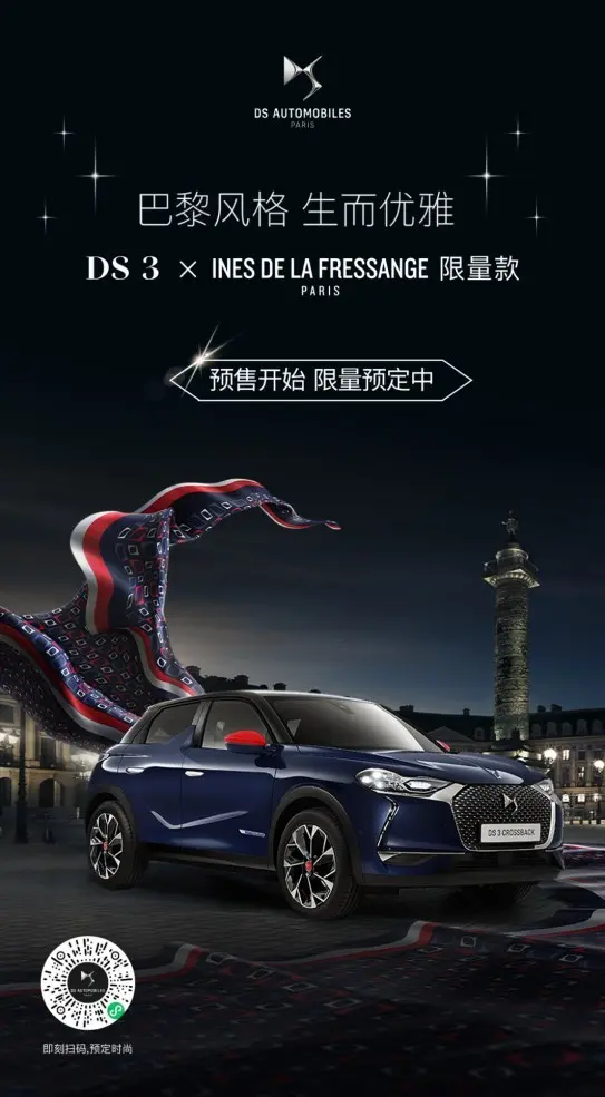 【2021年9月15日】来自巴黎的豪华汽车品牌DS宣布旗下纯电DS 3 x Ines de la Fressange限量款开启预售。该款车型是DS汽车与法国时尚品牌Ines de la Fressange联名推出的限量款,在中国仅限量发售5台,并即将在UCCA尤伦斯当代艺术中心UCCA Lab联合中国妇女发展基金会、上海时装周呈现的【“约会天才妈妈——形之所向”非遗时尚实验室】上市。