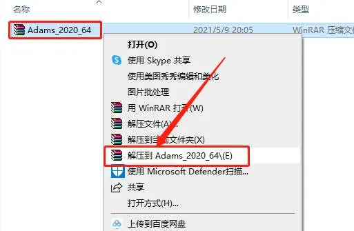 1.打开下载的Adams软件安装包,鼠标右击压缩包,选择【解压到Adams_2020_64】。