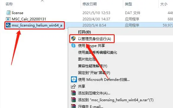 10.开始安装许可证:鼠标右击【 msc_licensing_11.13.3_windows64】许可证安装程序,选择【以管理员身份运行】。