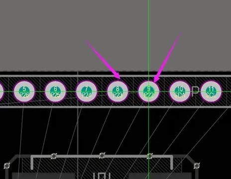 需要注意的是,该方法适用于排针、排阻、排母等不带IO或电源属性的引脚;当有交叉的情况,导线无法布线的时候,可采用该方法解决布线交叉问题。