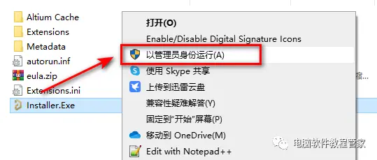 3.选中Installer,鼠标右键选择“以管理员身份运行”