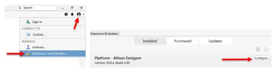 (2)打开Altium Designer,在右上角执行图标命令,然后选择“Extensions and Updates...”,进入“Extensions & Updates”(扩展及更新)界面,如图12-30所示。