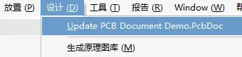 (1)在完整工程下,双击打开原理图,在原理图编辑界面中,执行菜单命令“设计-Update PCB Document Demo.PcbDoc”,或者在 PCB 设计交互界面中,执行菜单命令“设计-Import Changes From Demo.PrjPcb”,如图8-17所示。