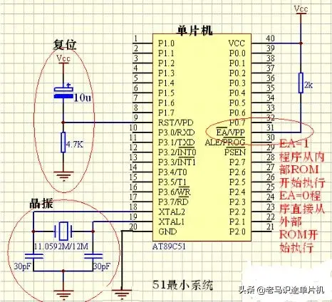 我们知道,想要让一个电路能够正常工作,必须满足它的最基本的工作条件,同样的,对于单片机电路来说,想让单片机电路工作起来,必须满足其最基本的要求,这些要求有:电源,时钟电路,复位电路。