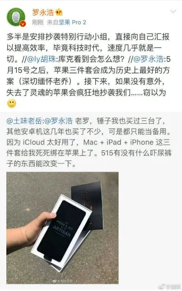 之前罗老师在微博极尽挖苦之能,自述即将革个人电脑、各大操作系统、语音助手的命。我很期待他能真正做出什么,为中国制造加油添彩。发布会前我猜测可能会有三维摇杆,AR眼镜什么的
