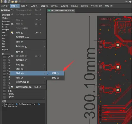 打开PCB文件、进行(Editl)-(OriginlI)-(Setl),然后鼠标点击PCB板左下角