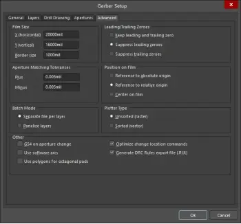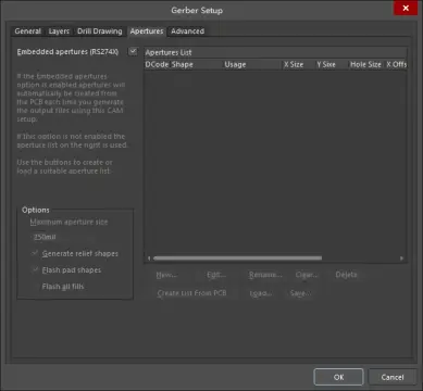 ①选择Embedded Apertures(RS274X)为输出GERBER文件为自带D码格式