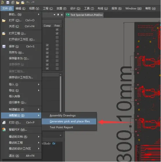 问:为何要将PCB文件里面的坐标数据、BOM数据、装配图导出生成文件? 答:因为PCB文件里面的数据转换Gerber文件时器件的坐标数据、BOM清单数据都会丢失,在PCBA组装过程中需要重新生成文件提供给生产使用。