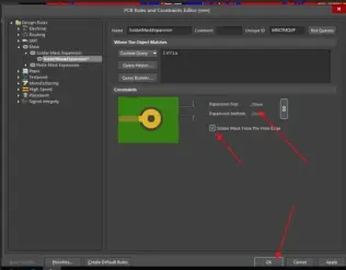 ⑦勾选Solder Mask From The Hole Edge再把开窗减-20mm或者-800mil点OK正常输出即可