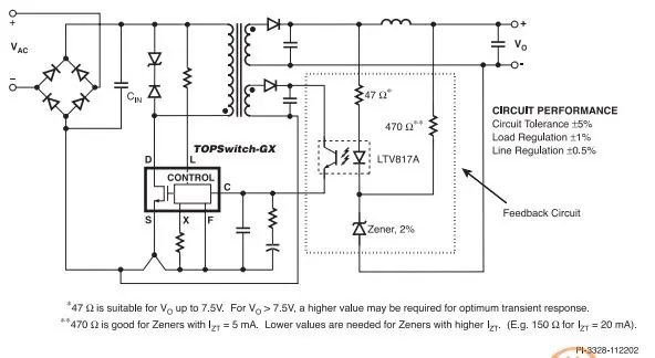 ·使用光耦器/稳压管反馈成本低且输出精度好