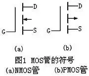 数字电路中MOS集成电路所使用的MOS管均为增强型管子,负载常用MOS管作为有源负载,这样不仅节省了硅片面积,而且简化了工艺利于大规模集成。常用的符号如