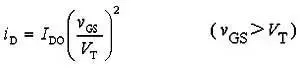 与结型场效应管相类似。在饱和区内,iD与vGS的近似关系式为