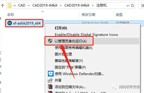 26.鼠标右击【xf-adsk2019_x64】注册机,选择【以管理员身份运行】。