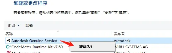 3、进入控制面板,卸载Autodesk Genuine Service,就用搞定了!