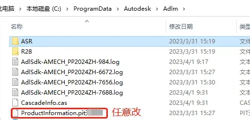 1、 进入目录C:\ProgramData\Autodesk\AdLM\,将ProductInformation.pit改名