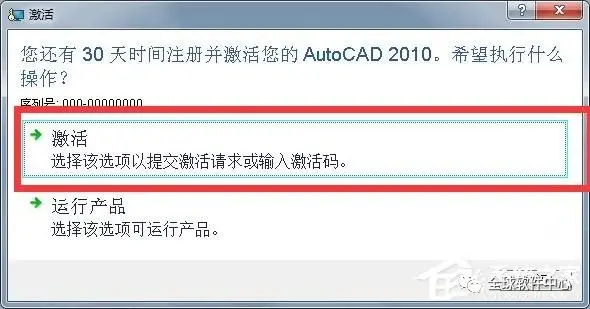 1、双击打开AutoCAD2010桌面快捷方式,打开软件后会提示您需要激活软件,您点击【激活】就可以了;