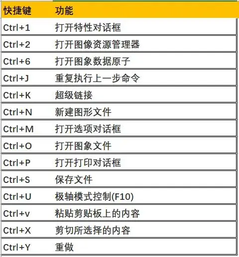 还有一类是以Ctrl+“字母键”,以及功能键F1~F8,比如Ctrl键+“N表示新建,F3就有”对象捕捉”的意思。