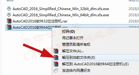 2.打开下载好的文件夹,找到CAD_2016**bit.exe,双击打开,这是一个自解压文件,打开后需要选择目标文件夹,建议选择 除C盘外的其它盘。等待解压,大概5分钟。