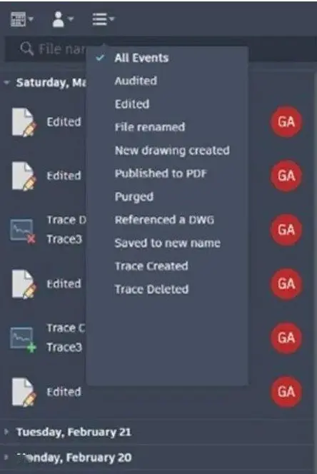 它还具有一些有用的工具,例如编辑、保存、外部参考等,以及如何将它们记录在不断变化的绘图中。这些活动通过用户、功能和日期记录,并且可以在任何阶段进行审查和过滤以查看或澄清活动。