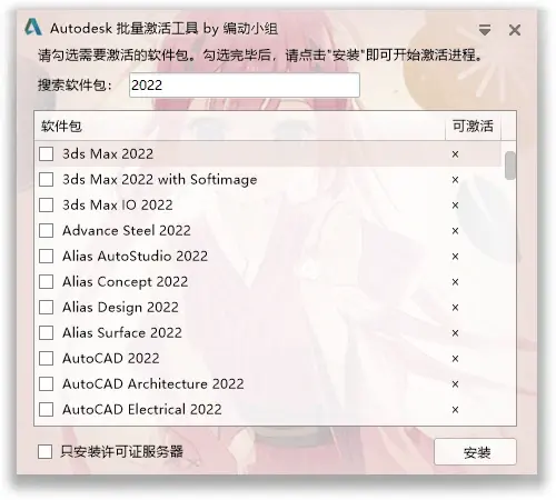 Autodesk批量激活工具:看图,各种版本,各种软件,支持的都在里面,搜索年份就可以找到你要的版本了,选定激活,搞定退出。