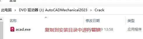 3、AutoCAD Mechanical机械版安装完成,执行破解流程,将crack中的破解文件复制到安装目录中进行替换即可。