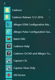 安装好之后,我们可以在已经安装好的程序中找到一个文件夹“Cadence Release 17.2-2016” ,文件夹下有许多插件,如下图。