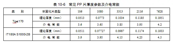 表10-6 常见PP片厚度参数及介电常数