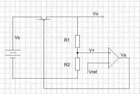 放大器的输出Va连接到MOSFET的栅极来控制MOSFET的阻抗。Va变大时,MOSFET的阻抗变大;Va变小时,MOSFET的阻抗变小。MOSFET上的压降将是Vs-Vo。